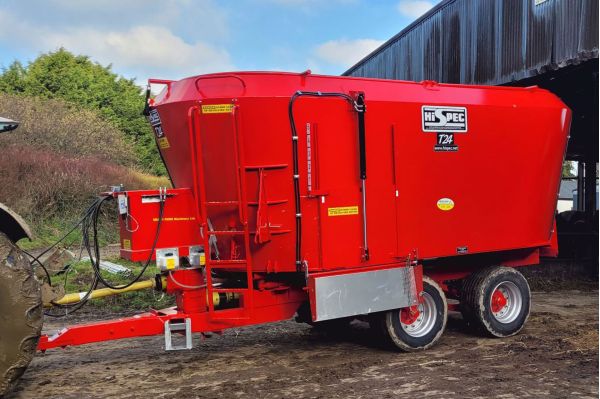 HiSpec’s vertical diet feeders allow the user to quickly and efficiently complete a ration using a low-pitched mixing auger with self-sharpening blades. These blades cut fibres to a desired length, and as the auger rotates, the mix moves vertically along the auger pitch. When the feed reaches the top of the mix it falls to the sides and the conical shape of the body ensures the mix is continuously repeated. As mixing is occurring the entire feed is also being shifted clockwise around the body, the company says.
