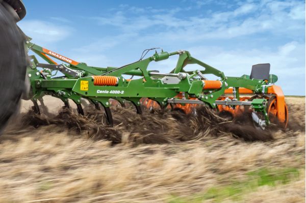 The introduction of this new hydraulic-folding model complements the existing Cenio product range of 3m, 3.5m and 4m rigid machines. The Cenio can be used with tractors from 105hp to 275hp. The three-point linkage mounted Cenio is a three-row mulch cultivator with interchangeable shares for depths from 5cm to 30cm. This enables the cultivator to be used for both shallow stubble cultivation as well as medium-deep and deep-loosening soil tillage. With a tine spacing of 30cm, Amazone notes that the Cenio can work with large amounts of crop residue, evenly mixing the matter back into the soil without blockages.