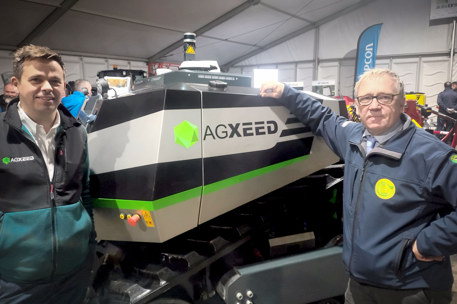 Peter Robinson, regional head of sales for Dutch agricultural autonomous robot company, AgXeed pictured with John Hughes, chair of the Association of Farm & Forestry Contractors in Ireland. This is a new appointment for Kelly’s of Borris and this is the first commercially available autonomous tractor available in Ireland and can be seen at Kelly’s Borris branch.