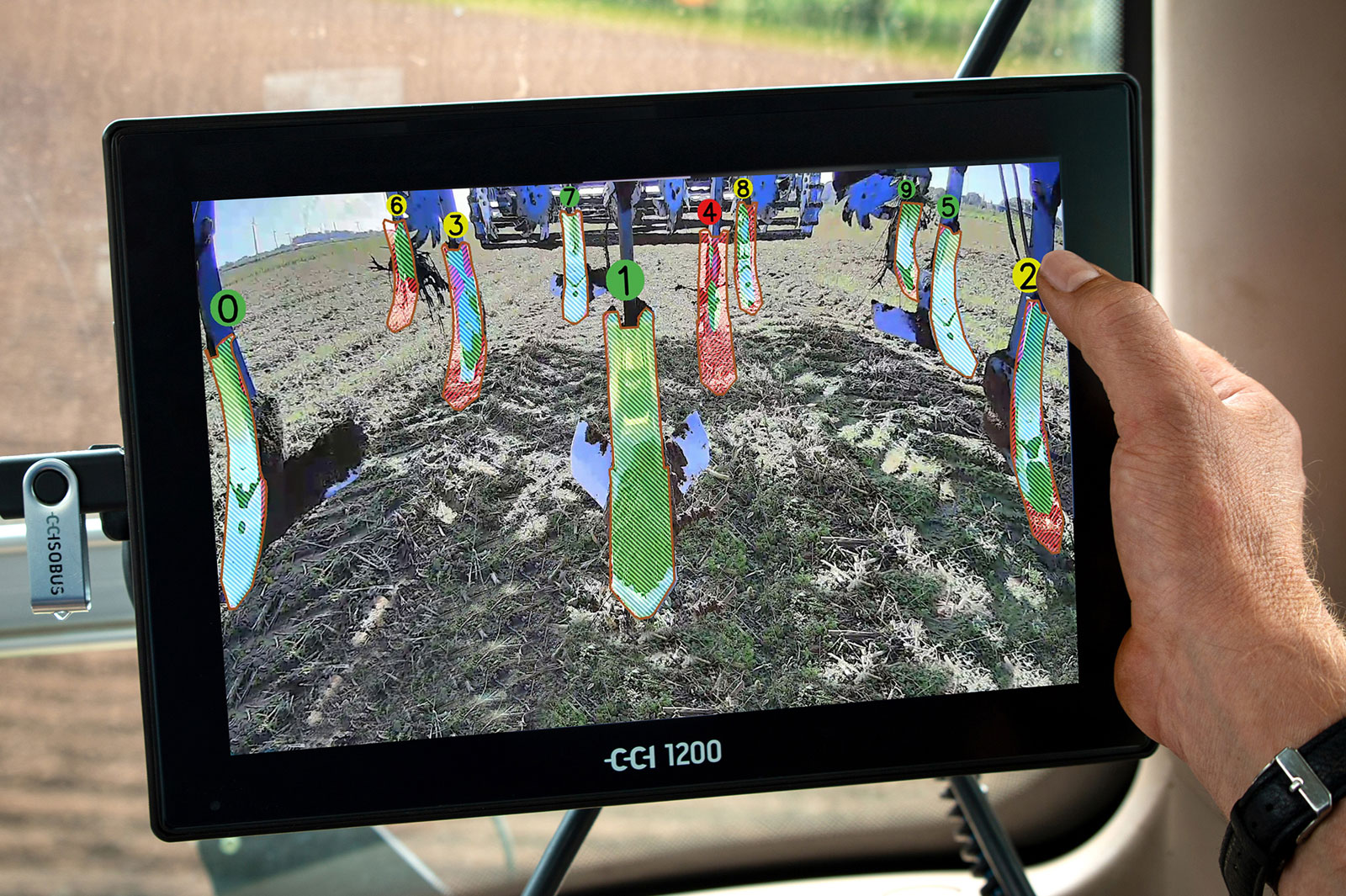 A software algorithm evaluates the condition of the shares, which is then displayed on the Isobus terminal via a traffic-light system. Extensively worn shares are shown in red, while damaged shares are marked in yellow and intact shares in green. Based on this information, the system calculates not only future wear but also the point in time at which it makes sense to replace the shares. If necessary, users can retrieve the current tool status at any time.