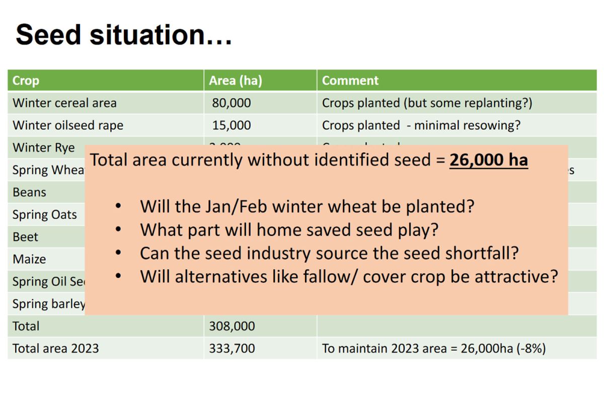 The main headline from the survey carried out between December 18 to January 15 with usable data from 414 farmers respondents, revealed that there will potentially be a shortfall in seed for spring planting of 26,000 hectares.